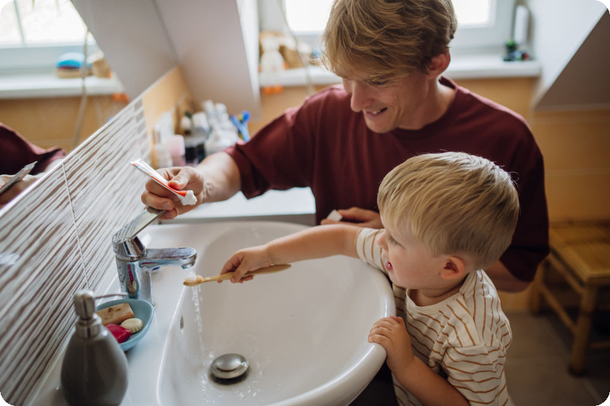 - 양치 시작: 칫솔에 치약을 묻혀 45도 각도로 잇몸 경계선을 따라 부드럽게 문질러줍니다.