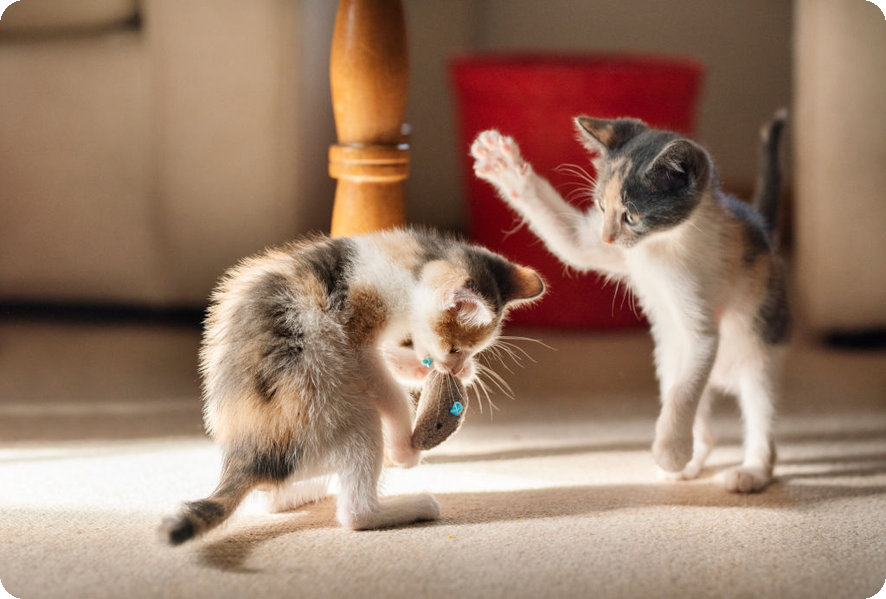 고양이들은 자주 사냥놀이를 통해 스스로의 능력을 키웁니다. 이 놀이는 고양이에게 기쁨과 스트레스를 해소할 기회를 제공합니다. 그러나 이러한 놀이가 지나치면 할퀴거나 물기 때문에 주의가 필요합니다. 다른 동물에서는 나타나지 않는 고양이의 유일한 특징 중 하나는 배가 불러도 놀이 삼아 사냥하는 경향이 있다는 것입니다. 이를 통해 고양이는 환경적으로 매우 유연한 생태적 적응력을 지니고 있습니다.